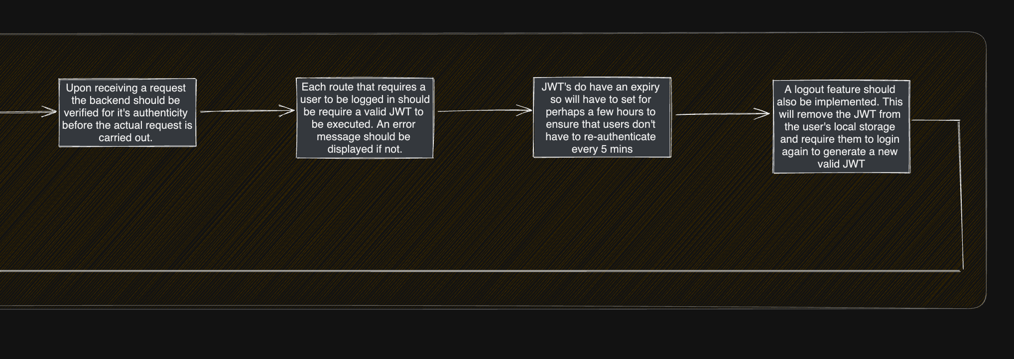 As listed above, one of the MVP requirements for this project was implementing authentication for the application. Given this was a new and quite difficult challenge, it is worth calling out how we approached this and how we got on.